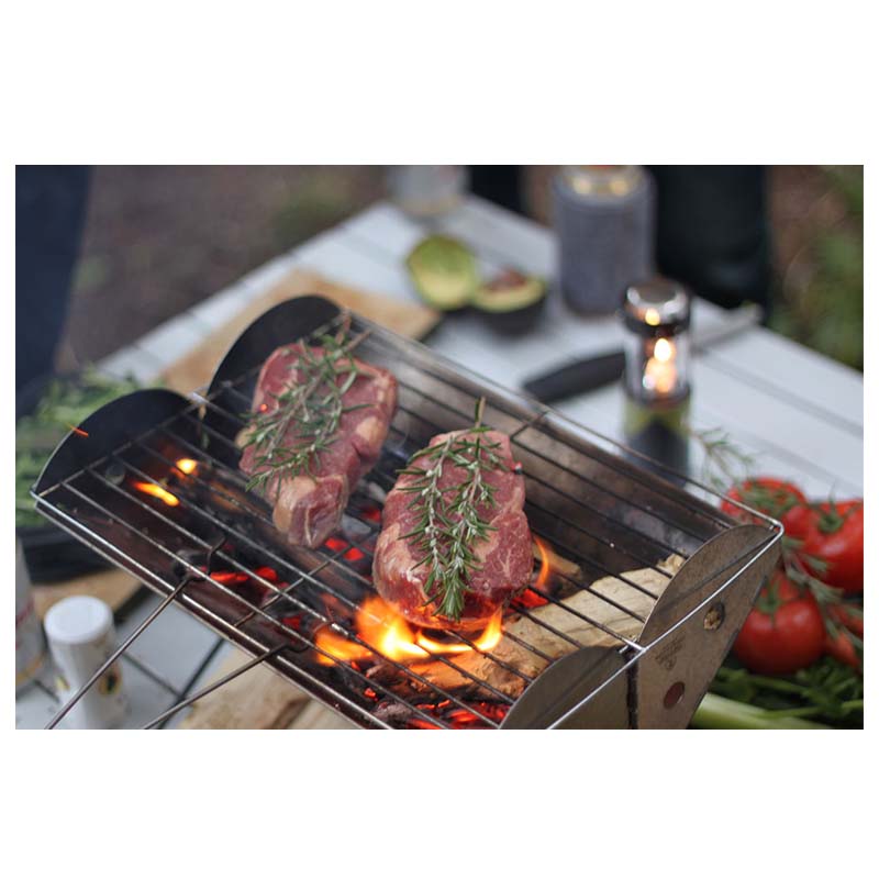 DescriptionThe Flatpack portable grill & firepit is compact for easy transportation to the beach, campsite or barbeque. It's constructed of stainless steel for durability and easy maintenance. After a quick 30 second set-up, you're ready to go. All you need to do to set up this grill is unfold it and place the grates on top. It has a stable base for safe grilling and the sides serve as wind breaks for grilling in windy conditions. It can also be used as a firepit, to help you leave no trace.