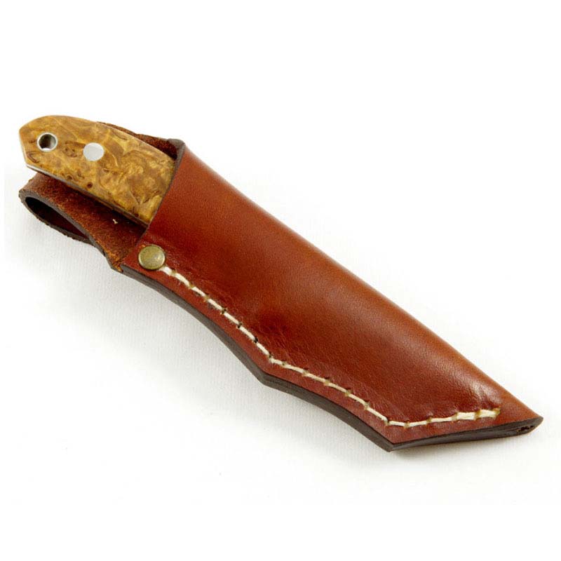 The handle tapered tang and shape of the handle makes the knife very nicely balanced and comfortable. The stabilized curly birch handle is tough, waterproof and low maintenance.