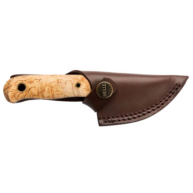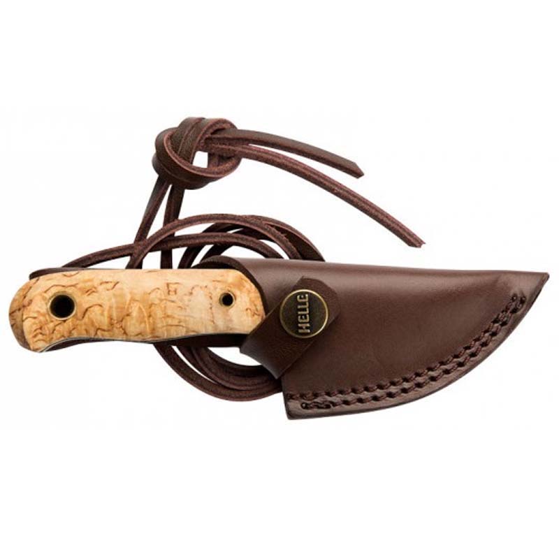 A triple laminated stainless steel blade and a handle of curly birch and vulcan fibre indicate the effort behind this brand new neck knife, accompanied with a genuine leather sheath.