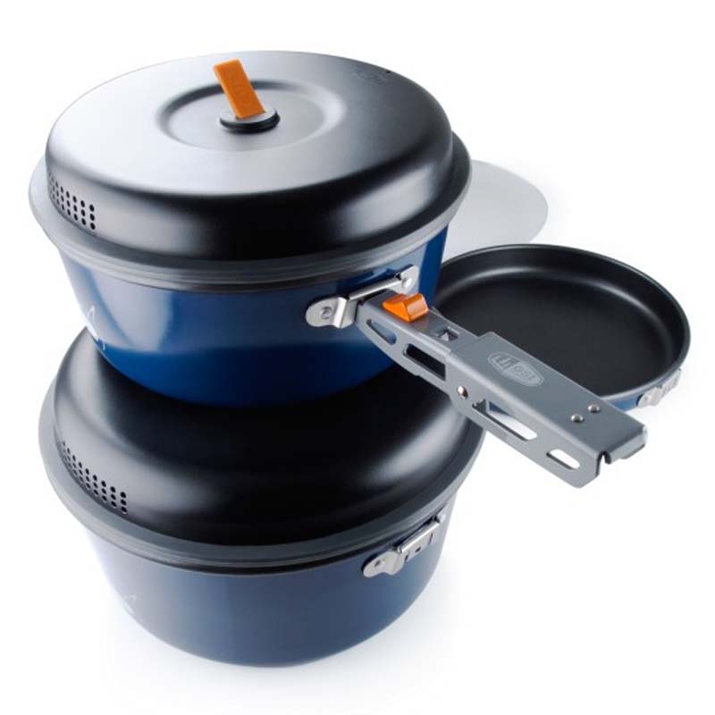 A compact and versatile cook set for family or base camping, the Bugaboo Base Camper offers premium performance at an exceptional value.This set includes a 2 liter pot with strainer lid, which in turn nests into a generous 3 liter pot with a strainer lid.