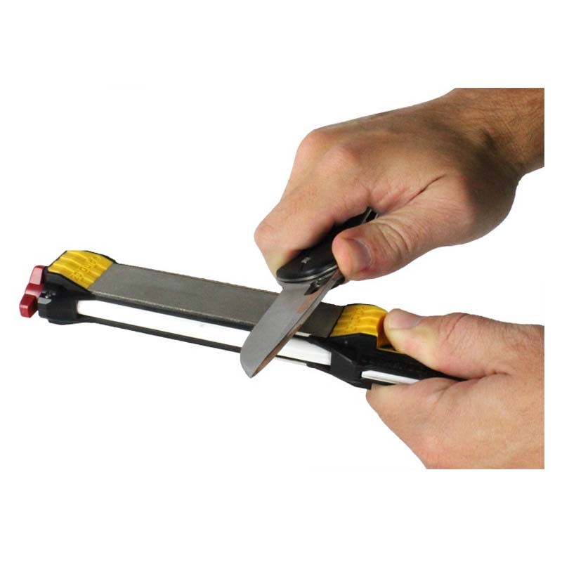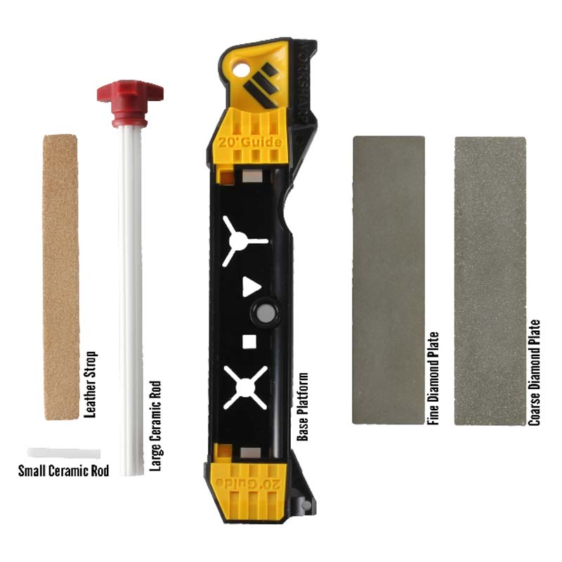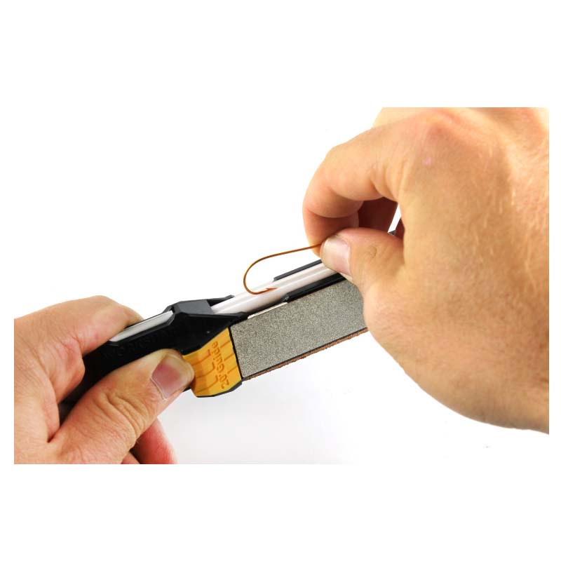 The Guided Field Sharpener incorporates 5 stages of sharpening and honing, each with a built in angle guides for a consistent bevel across the entire blade.