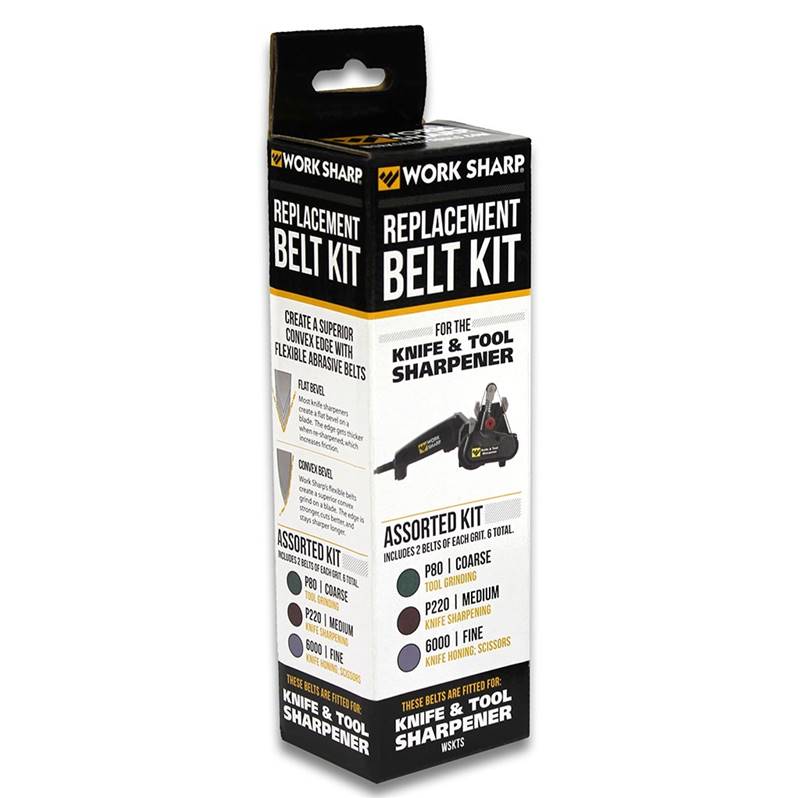 Description Original Knife & Tool Sharpener assorted replacement belt kit. These abrasive belts are a direct replacement for the abrasive belts that come standard with the Original Knife & Tool Sharpener.