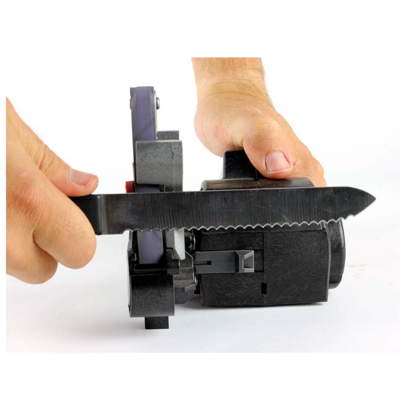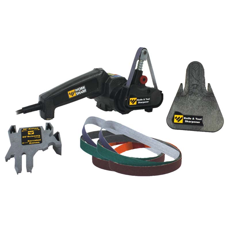 DescriptionThe Original Work Sharp Knife & Tool Sharpener is the first knife sharpener designed to sharpen every knife you own. Using flexible abrasive belts, the sharpener is able to sharpen not just straight bladed knives, but also curved knives, tanto blades, fillet knives, serrated knives, gut hooks and virtually any other shape of knife blade.