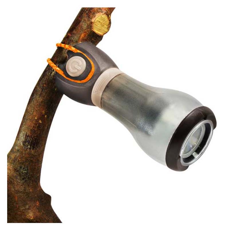 Push the globe down to transform the lantern into a handy flashlight for reading in bed or to accompany you on late-night forays out of your tent. Offers four lighting modes, including a strobe mode.