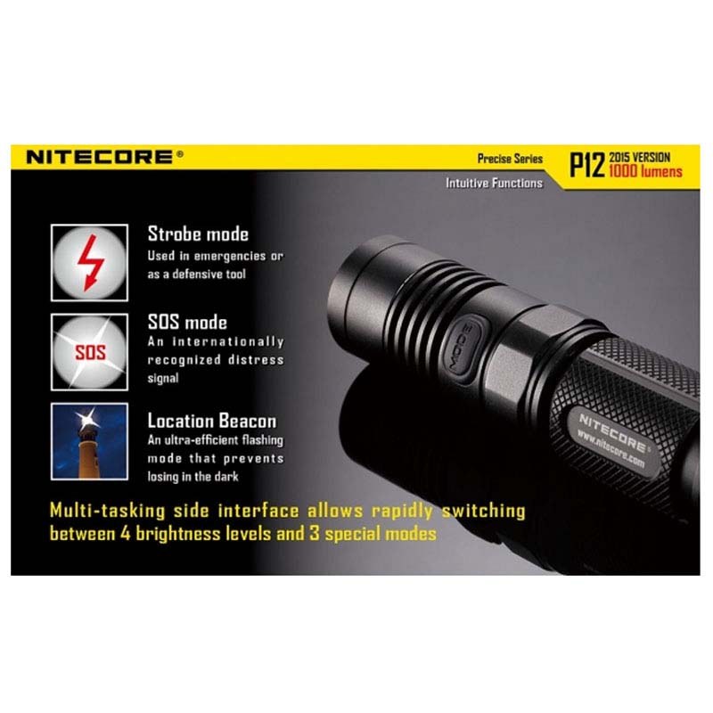 Description The Nitecore P12 redefines what is possible from a compact every day carry flashlight that is small enough to fit into a pocket. With a maximum output of 1000 lumens from the Cree XM-L2 U2 LED and a range of up to 232 meters, the P12 outperforms every other light in its class with ease while adding many unique and innovative features.