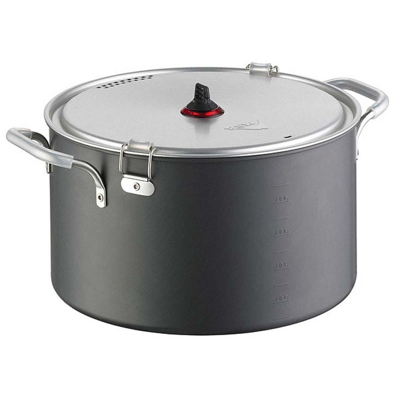 Description This is our highest capacity, full-featured cook system for groups of 4 or more. Including a big, hard-anodized 5.3L pot, and a 3.2L nonstick, you can fix a feast for the whole posse on a road trip, while its compact nested design makes it a great option for big river and group backpack trips as well. You get an extra Strainer Lid for maximum efficiency, plus plates and mugs for four.