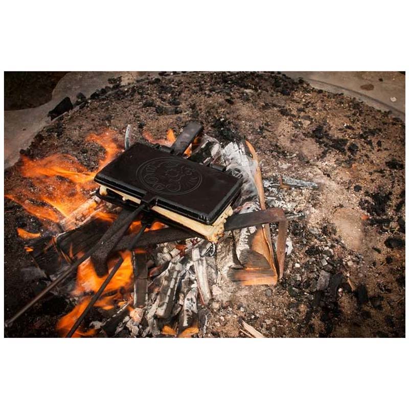Description Whether on the barbecue or the campfire, each waffle will be a hit. Thewaffle iron enlarges your outdoor cuisine with another great dessert:fill with waffle dough, turn once if necessary, and the deliciouspastry is ready to be eaten.