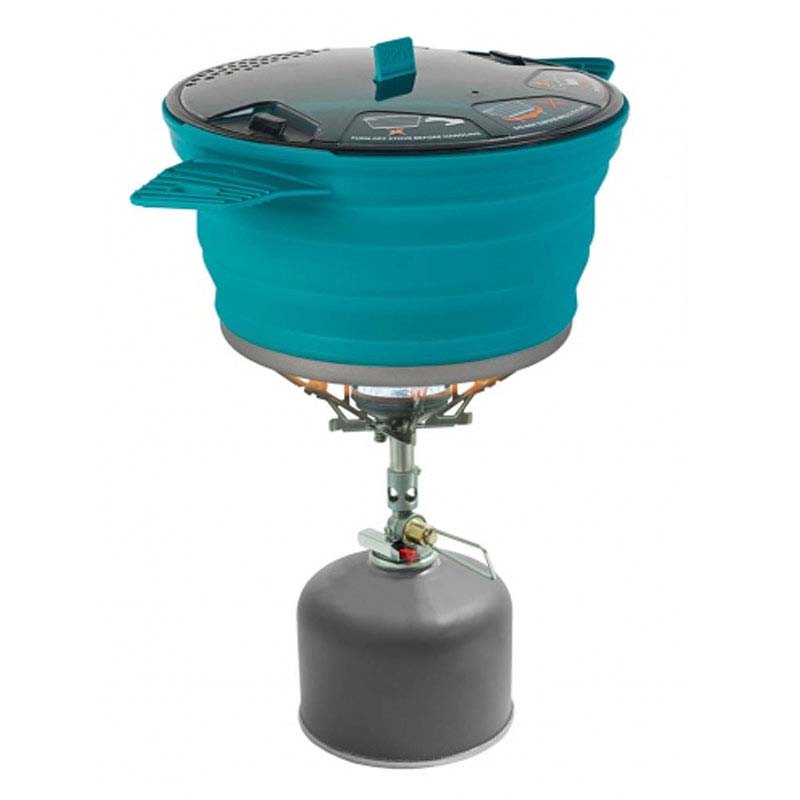 The X-Pot 2.8L is the original fully featured, collapsible cooking pot. The capacity is ideal for 2-3 campers. The silicone walls are constructed from 5 folding segments which means increased expanded height while still packing down to only 45mm. The lid features a built-in strainer and can be locked to the pot with the folding handles for transport.