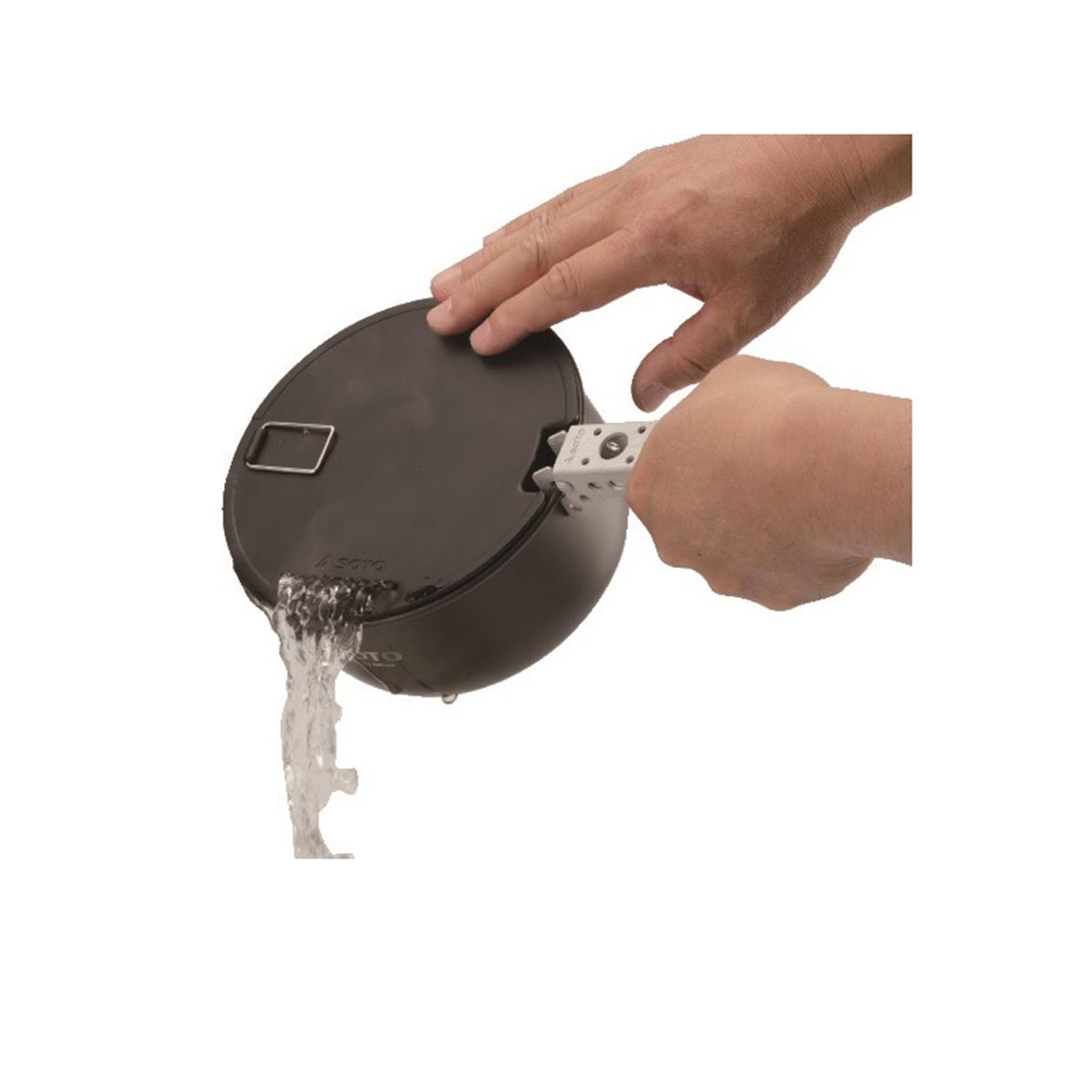 DescriptionSoto's anodised aluminium pot set excels in shock resistance, wearability and corrosiveness. The wide rim narrow pot provides enough room for cooking large amounts of food and makes cleaning-up easy. The wide base minimises heat loss thereby reducing gas consumption. Stack and stow all in one.