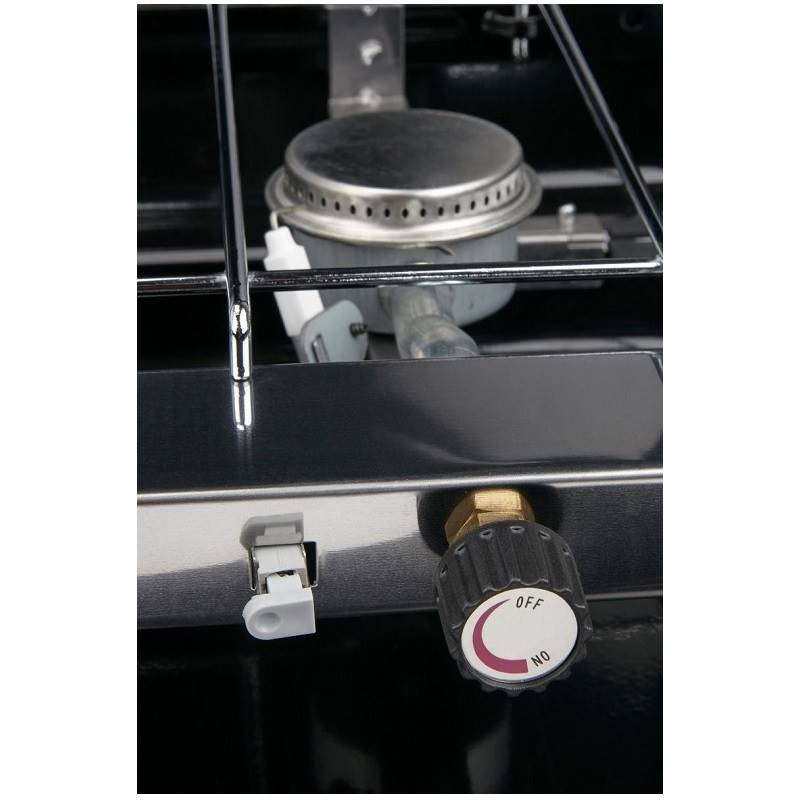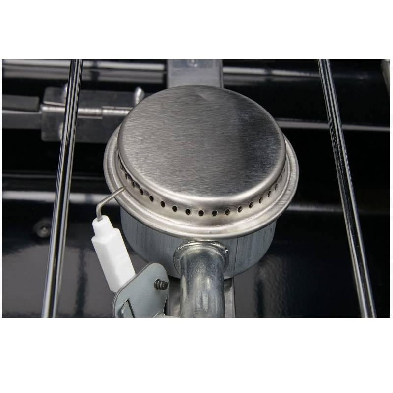 A double hob and Grille/Toaster with tray, is, when folded, one of the slimmest family cookers we have seen. Both hobs have Piezo Auto-start ignition and the burner unit is cantilevered from the base of the case. The base of the case acts as the drip tray and has simple access to facilitate cleaning.