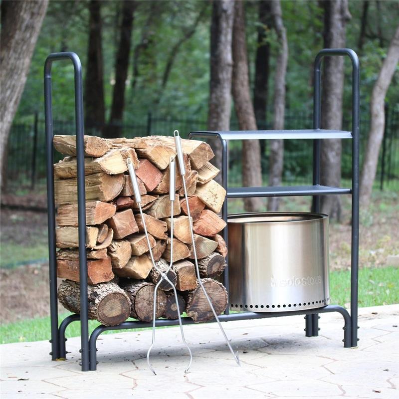 The Station combines functionality and practicality by offering ample fire wood storage, a storage space for Ranger or Bonfire, and features utility shelves to organize fire starting supplies, provide a gear workspace, or offer additional space for entertaining. Solo Stove Station is powder coated for durability and holds up to 250 pounds.