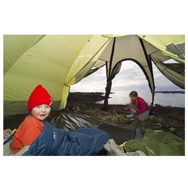 Elg Junior Flex is an adjustable sleeping bag for children between 130-160 cm tall. You can easily adjust the length by tucking the foot end inside the bag, close the end with a zipper, and then you have a shorter bag with extra insulation in the foot-end for the youngest. Elg is the thinnest bag in the Junior-Flex concept and is most suitable as a spring and summer bag. With two layers of lightweight fiber this reduces heat loss.