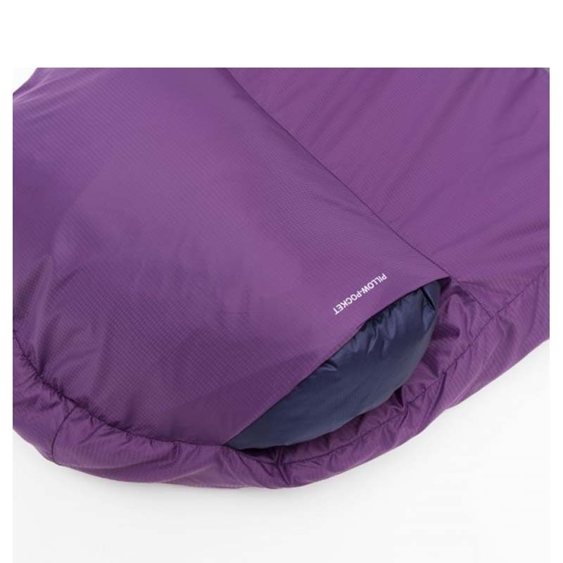 Research show that women generally experience more heat loss than men around the hips and feet. Based on this insight the Lady bag is stitched so that it is more narrow around the shoulders and wider around the hips to increase comfort and prevent heat loss. To prevent heat loss, it also has an extra layer of down-insulation in the foot end and a taller heat trap collar around the neck.