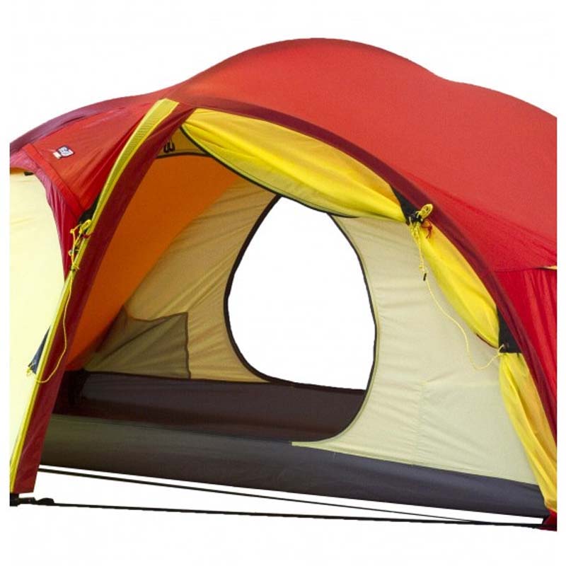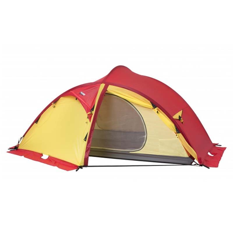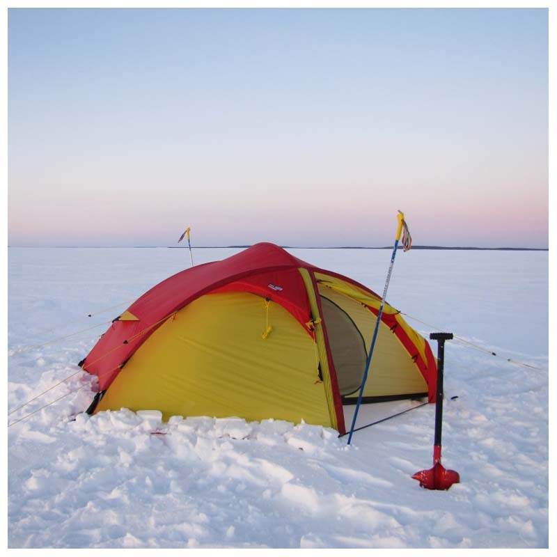 With two entrances and two vestibules it is flexible and comfortable for two persons. It is ideal to use one vestibule to store luggage and one for cooking, or to let each person have their own separate room with exit. The tent frame is designed with pre-bent pole-sections, which makes the walls steeper and increases the interior space and comfort level. The Helsport Airflow ventilation system including four vents (in addition to the entrances) ensure excellent ventilation and minimize condensation. The vents can also be closed completely, to prevent them from packing with snow in strong winds.