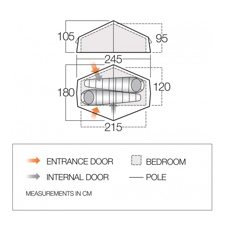 The Cairngorm is perfect for those backpacking and trekking, utilising a lightweight, single hooped structure which features TBS®II system for extra stability. Cairngorm pitches quickly and, through careful design, provides more internal volume and less weight than similar styles