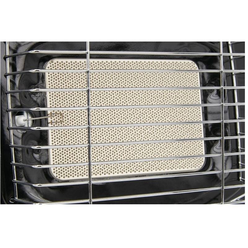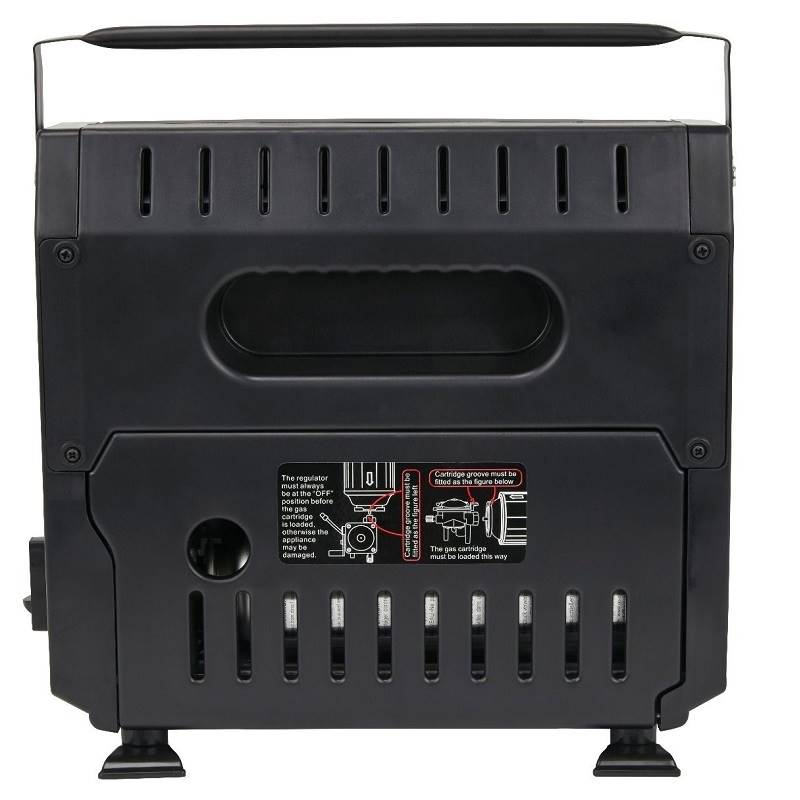 Portable gas heater with an economical consumption and 10 hour duration per cartridge, perfect for family camping.