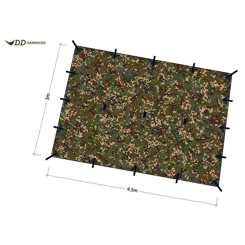 At a generous 4.5m x 3m, the DD Tarp XL provides ample storm shelter for small groups and solo campers alike. Its 19 reinforced attachment points allow you to set it up in countless different formations - and its uses extend well beyond hammock cover!