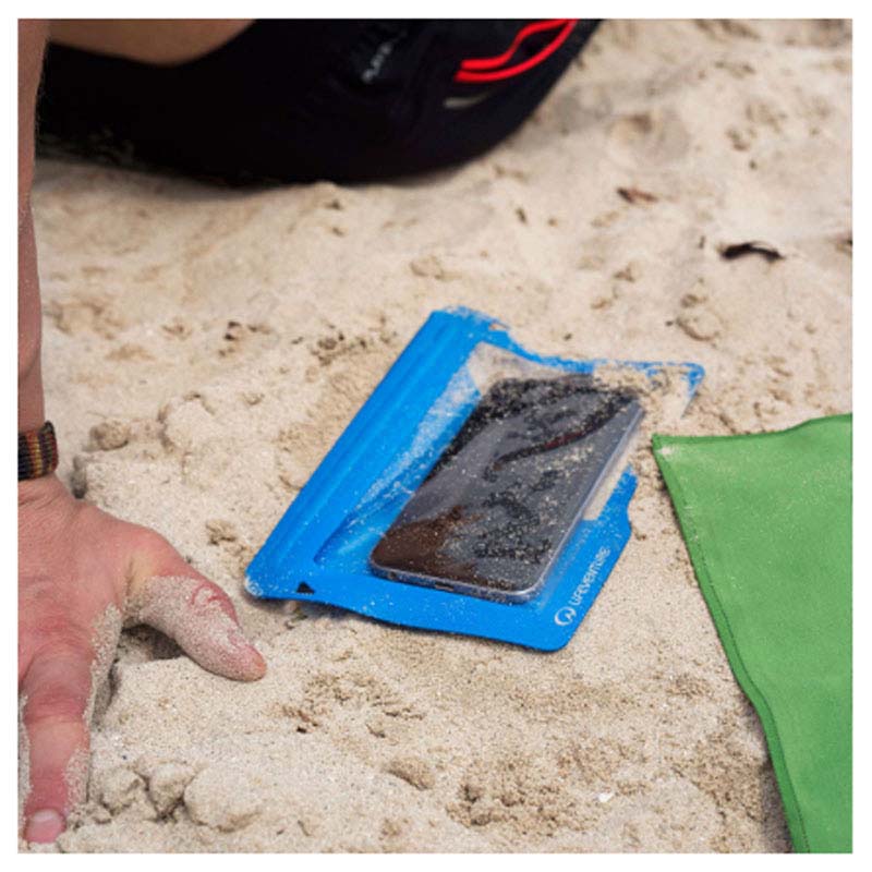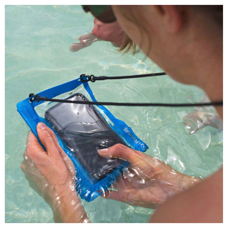 The IPX7 rated construction prevents the ingression of water, sand and dirt. Insert your belongings into the pouch, run your thumb and index finger along each side of the two track LocTop closure and shut with the secure fastening. You can either wear the case around your neck using the lanyard or secure it to your gear using the four lash points.